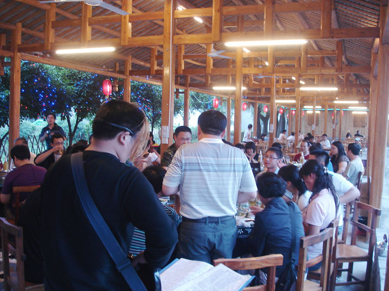張家界武陵源大作坊美食城是一家集垂釣休閑,特色餐飲,夜市為一體的大型風(fēng)味美食城!位于風(fēng)景如畫(huà)的武陵源風(fēng)景區(qū)區(qū)政府所在地,占地3000多平方米,可同時(shí)容納400多人就餐。這里也是景區(qū)內(nèi)匯集土家美食,苗家美食的第一坊!美食城按純木四合院建造,內(nèi)設(shè)酒作坊,豆腐作坊,臘味作坊,糍粑作坊,有垂釣區(qū),燒烤區(qū),菜品自助區(qū),客人廚藝展示區(qū),農(nóng)產(chǎn)品展銷(xiāo)區(qū)等。酒作坊內(nèi)聘請(qǐng)了民間煮酒大師現(xiàn)場(chǎng)煮酒,你有機(jī)會(huì)可以現(xiàn)場(chǎng)吃到熱乎乎的頭鍋酒,酒坊內(nèi)有純米酒,包谷燒,高梁酒,有用野果泡制的各種果酒---燈籠酒,楊梅酒,彌猴桃酒等,更有特色的是把高梁酒放在正在生長(zhǎng)的楠竹內(nèi),用竹內(nèi)竹膜的香味把酒增香,十二天就把竹子砍下再放養(yǎng)三天就好了,客人要吃現(xiàn)場(chǎng)鋸竹筒酒吃!豆腐坊也是聘請(qǐng)民間老農(nóng)現(xiàn)場(chǎng)用自制的石磨做豆腐,在這里你可以吃到真正有豆香味的原汁原味的石磨豆腐,和渣,菜豆腐,豆腐腦等豆制品!臘味作坊里有冬天用各種香料熏制的正宗湘西藏臘肉,臘豬頭肉,臘香腸,臘豬腳,各種臘制品臘野味等。糍粑坊每天在晚上人多用餐高峰時(shí)現(xiàn)場(chǎng)打滋粑,客人也可以自己參與打糍粑這個(gè)快樂(lè)的過(guò)程,想受過(guò)年時(shí)才有的熱鬧情景!在垂釣區(qū)里我們放養(yǎng)有很多野生魚(yú)類,有時(shí)間了你可以來(lái)這里休閑垂釣,得到的魚(yú)我們就會(huì)給你現(xiàn)場(chǎng)加工,有清沌的,紅燒的,青椒燜的,酸湯的,都很好吃哦。燒烤區(qū)里,我們高薪聘請(qǐng)了燒烤大師為你現(xiàn)場(chǎng)制做,你也可以自己動(dòng)手,有烤羊排羊腿,各種串烤,烤全魚(yú),烤全兔等,還有各種鐵板烤可以自己炒著吃!菜品自己選區(qū)里有各種山野菜,壇子菜,干菜,臘味等,有各種鮮活的魚(yú)類,河蛘,水魚(yú),田螺,龍蝦等,有各種農(nóng)家的土雞土鴨等,有各種鮮活的野味等你來(lái)享受美味呢!客人廚藝展示區(qū)里老板特設(shè)制地幾口大鍋, 很有特色的是, 你可以自己親自下廚, 酸甜苦辣任您自由調(diào)配 。 煮好了, 大家就圍著這“灶臺(tái)”合一的飯桌享受張家界的美食了。(張家界的三下鍋是很有特色的,是邊煮邊吃的, 只是這“三下鍋”是“大型三下鍋”而已。到張家界旅游,吃張家界的“三下鍋”是一種獨(dú)有的旅游體驗(yàn),到大作坊吃“大型三下鍋”,則更將會(huì)為你的旅程增添一份難得的回味。農(nóng)產(chǎn)品展銷(xiāo)區(qū)里展示著當(dāng)?shù)鼗蛳嫖鞯貐^(qū)最暢銷(xiāo)的農(nóng)產(chǎn)品食品:正宗湘西鄉(xiāng)里臘肉,香腸,各種臘制品,洗車(chē)河霉豆腐,靈潔牌剁椒辣醬系列,菌油,正宗茶籽油,苗家酸湯,鄉(xiāng)里正宗葛粉,大壇湘西五糧液,竹簡(jiǎn)敲敲酒,張家界茅巖霉茶,野生蜂蜜,高山葛粉,張家界第一山珍巖耳,葛根片等等!