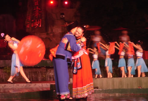姑娘出嫁,為女人一生中最大的喜事,本應(yīng)充滿幸福、歡樂的氣氛。然而,舊時(shí)湘西、湘南、鄂西、川西(成都等地)、黔東(銅仁、凱里一帶)諸地,卻流行著一種與之完全相反情調(diào)的古老婚俗——“哭嫁”。也就是在姑娘“出閣”之前,不但新娘本人哭得很傷心,像淚人一般;而且,新娘的母親、姐妹以及姑媽、姨媽、舅媽及其他交往較多的女友,都要陪著新娘哭。湘西土家族哭嫁的風(fēng)俗尤為普遍、濃厚,不但哭嫁的時(shí)間較長(少則十來天,多達(dá)個(gè)把月),而且哭嫁歌也保存得古樸、完整。 姑娘出嫁為什么要哭?哪有那么多的東西可哭?這是一種蘊(yùn)含甚為豐厚的人生禮俗,也是一種饒有興趣的婚俗事象。 俗話悅:“人不傷心不落淚!惫媚锍黾拗砸蓿且?yàn)樵谂f式婚姻制度下,女孩(尤其是勞苦大眾家庭的女孩)總是作為犧牲品“拋”(賣)給夫家的,她們的身心受到極大傷害。因此,湘西等地的女孩在出嫁之前要哭泣,要呼號,哭嫁歌就是感情發(fā)泄的最好表現(xiàn)方式。 哭嫁的源起 哭嫁的風(fēng)俗,不知道起源于什么時(shí)候。戰(zhàn)國時(shí)期,趙國的公主嫁到燕國去作王后,她的母親趙太后在臨別時(shí)"持其踵,為之泣,祝曰,必勿使返。"大約就是后來長盛不衰的哭嫁風(fēng)俗的濫觴了。 這種風(fēng)俗,直至清末還盛行于四川農(nóng)村中,隨地區(qū)變化而大同小異。解放前,聽老人們說,早些時(shí)候,沒有嫁而不哭的人家。如果出現(xiàn)嫁而不哭的姑娘,也會(huì)被鄰里看作沒有教養(yǎng)的人,傳為笑柄;相傳有出嫁姑娘不哭而遭母親責(zé)打的事,這位母親當(dāng)然算得上是入流導(dǎo)演了。 舊時(shí)宣講故事中,有花轎臨門,父親強(qiáng)令哭《迎風(fēng)罵媒歌》的情節(jié),可知哭嫁是有歌詞的,帶有表演性質(zhì),原是用來渲染氣氛,以悲襯喜;不過,因?yàn)榛橐鍪前k的,真哭真罵的也不會(huì)少。 抗日戰(zhàn)爭后期,風(fēng)氣較開,哭嫁之風(fēng)已不盛行,而老人們卻還在津津樂道,哭的方式是,從婚期前一個(gè)月的首日起,入黃昏,姑娘訴哭約一個(gè)小時(shí),其聲嗚嗚。十天以后,她的母親加入"陪哭";又十天以后,她的祖母加入陪哭。這家沒有諸姑姊妹,人們說,如果有的話,也應(yīng)當(dāng)加入陪哭行列的。 哭嫁在川西叫"坐堂"。清代吉道人《味蔗軒隨筆·坐堂詞》云:"婚姻之禮,各省風(fēng)俗不同。然酌禮準(zhǔn)情,各省亦大同小異。凡男家娶婦先賦之詩,謂之'催妝';女家親串頌女之詞,謂之'坐堂'。坐堂者,女當(dāng)喜期將近之先數(shù)夕,其諸姑伯姊,置酒為女祖餞,各述吉祥之詞,以為頌美,女則申己之意以答。女左右更有少女,則隨而嫻習(xí)者也。其詞要多鄙俚,然有音韻凄清,風(fēng)格遒勁,如古歌古謠者。羅江明府蔡,微服巡查鄉(xiāng)里,一日行至某處,值有女子歸,諸娣姒咸以諛詞頌女,女申意以答。忽風(fēng)吹句入耳,詞曰:'鳳凰落在桌子上,哪個(gè)女兒肯離娘'。一字一轉(zhuǎn),音韻凄其,誰謂天籟之鳴,不在愚夫愚婦耶!"云云。吉道人姓周名際唐,成都人。吉道人記得明明白白,可惜他只記了一句哭嫁詞,難窺全貌。好在舊時(shí)坊間叢刻中有《訓(xùn)女哭嫁》一種,可見一斑。這本小書的目錄有《閨聲哭》、《娘訓(xùn)女》、《嫂哭妹》、《哭爹媽》、《哭哥嫂》、《花轎到屋哭》、《哭叔爺》、《哭兄弟》、《哭外公外婆》、《哭舅爺》、《拜香火哭》等等,編次有點(diǎn)凌亂,似乎隨手所記,未經(jīng)文人之手。遙想《詩》十五國風(fēng)未刪之時(shí),大約也不過如此吧! 閨聲哭 娘聽后園鳥雀驚,要聽房中女兒聲。 我娘當(dāng)門苦葛藤,手攀苦葛訴苦情。 我娘苦情苦過了,女兒苦情才起根。 ............ 桔子開花葉子青,陽雀開聲我開聲。 新打銅盆才裝水,新打剪刀兩面青。 娘不開口我開口,娘不開聲我開聲。 當(dāng)門一根木蓮樹,目連樹上掛卷經(jīng)。 一本經(jīng)書背完了,未見我娘來開聲。 虧了我娘睡得穩(wěn),爹媽眼淚貴如金。 哭爹媽 月亮彎彎照華堂,女兒開言叫爹娘。 父母養(yǎng)兒空指望,如似南柯夢一場。 一尺五寸把兒養(yǎng),移干就濕苦非常。 ............ 勞心費(fèi)力成虛恍,枉自爹娘苦一場。 哭兄弟 黑漆茶盤烏木頭,姐姐離娘弟不留。 留到姐姐吃你飯,留到姐姐穿你衣。 兄弟當(dāng)家掙家忙,嫁了姐姐買地方。 上頭買齊潼川府,下頭買齊遂寧鄉(xiāng)。 ............ 這個(gè)本子所記是川北的歌詞,以前所見的是川南,吉道人所記的是川西,川東,大約也不會(huì)大異的。遺憾的是,該書所記哭嫁詞雖有"只怨媒人莫良心"等語,卻沒有列出"罵媒專目,大約是怕媒人太難堪了吧! 其實(shí),罵媒是哭嫁中必不可少的節(jié)目,也是最具反抗色彩的哭嫁歌詞。舊社會(huì),婦女無婚姻自由可言,由于"三從四德"的束縛,平時(shí)對于自己的終身大事幾乎不能置一詞,全由媒人和父母擺布;因此,這登花轎之前的"罵媒",便是難得的發(fā)泄機(jī)會(huì)。這早已反映在戲曲和民間說唱等藝術(shù)之中。 以前,川劇《柳蔭記》有《英臺(tái)罵媒》一折,英臺(tái)罵媒人,言詞激烈,聲色俱厲,充分表現(xiàn)了祝英臺(tái)剛烈的性格和反封建精神。她罵道:"提媒婆,更恨她,胡言亂語嘴喳喳......唯愿你,房屋遭火化,田園水推沙。"但這場戲現(xiàn)在卻被刪掉了,五六十年代還有的,全國第一屆戲曲會(huì)演的川劇《柳蔭記