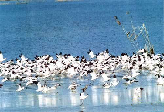 東洞庭湖是一個(gè)大湖泊型寬闊河道,它承納長(zhǎng)江中上游和湖南的湘、資、沅、澧4條江河水量。湖泊的周圍是廣闊的沼澤和平原。 東洞庭湖是洞庭湖湖系中最大的湖泊,年平均過(guò)湖水量達(dá)3126億立方米。常年湖容量178億立方米,水深4-22m,最大水位落差為17。76m,ph6.8-8.6。它的地貌呈溝港縱橫的濕地景觀。土壤為湖沼土和河沼土。年平均氣溫為17℃,湖水丹頂鶴年平均溫度17.5℃,總降水量1200-1330mm,無(wú)霜期258-275天 該湖有豐富的沉水、浮水和挺水植物。記錄到131種水生植物,隸屬40科,75屬。常見的沉水植物包括苔草、黑藻、浮水植物有蓮、芡和浮萍;挺水植物有水燭和蘆葦?shù)取竦刂車堑咎锖推渌r(nóng)作物。