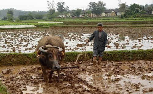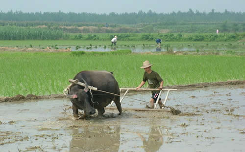 農歷三月,草木發(fā)芽,春耕生產開始了。搶水整田是莊稼人一春的要務,把犁耙搬出去,把牛趕出去,然后一聲吆喝,打破鄉(xiāng)村田野的寂靜。一春的辛苦勞作,便開始了。