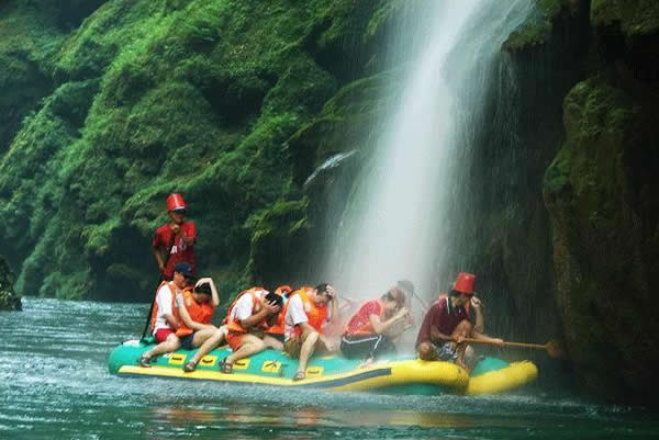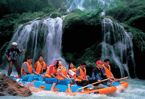這是繼張家界國家森林公園開放以后開辟的又一個(gè)旅游新景區(qū),坐落在市區(qū)以西35公里處。1986年,茅巖河在全國首創(chuàng)橡皮舟漂流旅游項(xiàng)目。茅巖河全長50多公里,兩岸全是懸崖峭壁,河段多險(xiǎn)灘、急流、瀑布、古木,有"百里畫廊"之美譽(yù)。乘橡皮舟順?biāo),時(shí)而急,驚心動(dòng)魄,時(shí)而緩,優(yōu)哉游哉。一路賞夾岸奇山異峰,又可領(lǐng)略水上激情,二者可兼得,其中茅巖瀑布和溫泉最為壯觀和最具特色。