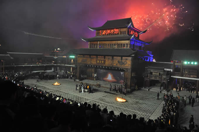 土家硬氣功表演,湘西三大蠱迷巫術表演(包含上刀梯、走鐵梨、下火海),大型土家擺手舞表演。