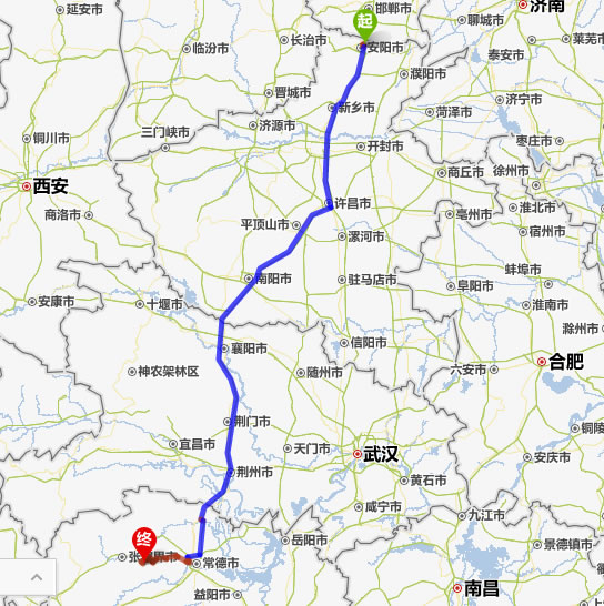 安陽(yáng)去張家界自駕車自助游線路圖全程高速):