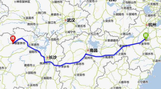 義烏去張家界自駕車(chē)自助游線路圖全程高速):