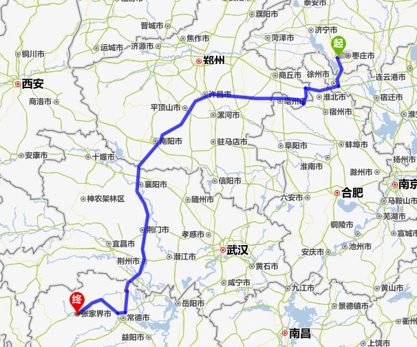 棗莊去張家界自駕車自助游線路圖全程高速):