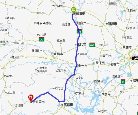 襄陽(yáng)去張家界自駕車自助游線路圖全程高速):