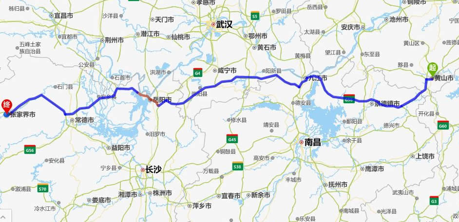 黃山去張家界自駕車自助游線路圖全程高速):