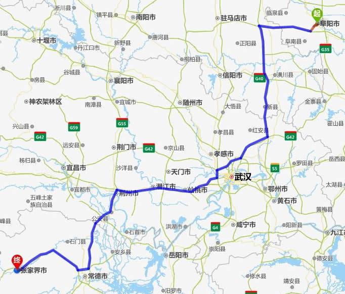 阜陽(yáng)去張家界自駕車(chē)自助游線路圖全程高速):